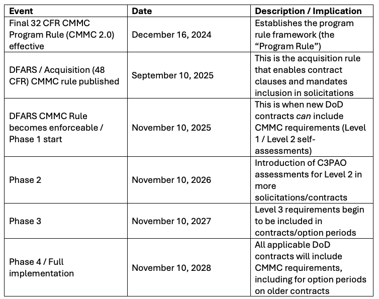 The Cybersecurity Maturity Model Certification (CMMC 2.0) is a U.S. Department of Defense (DoD) initiative that ensures companies in the defense supply chain protect federal data. Phase 1 of the rule takes effect on November 10, 2025. While CMMC applies specifically to prime DoD contractors, the reality is that sub-contractors and commercial firms—from software developers to cloud service providers—are just as responsible for meeting CMMC requirements if they handle sensitive Federal information.